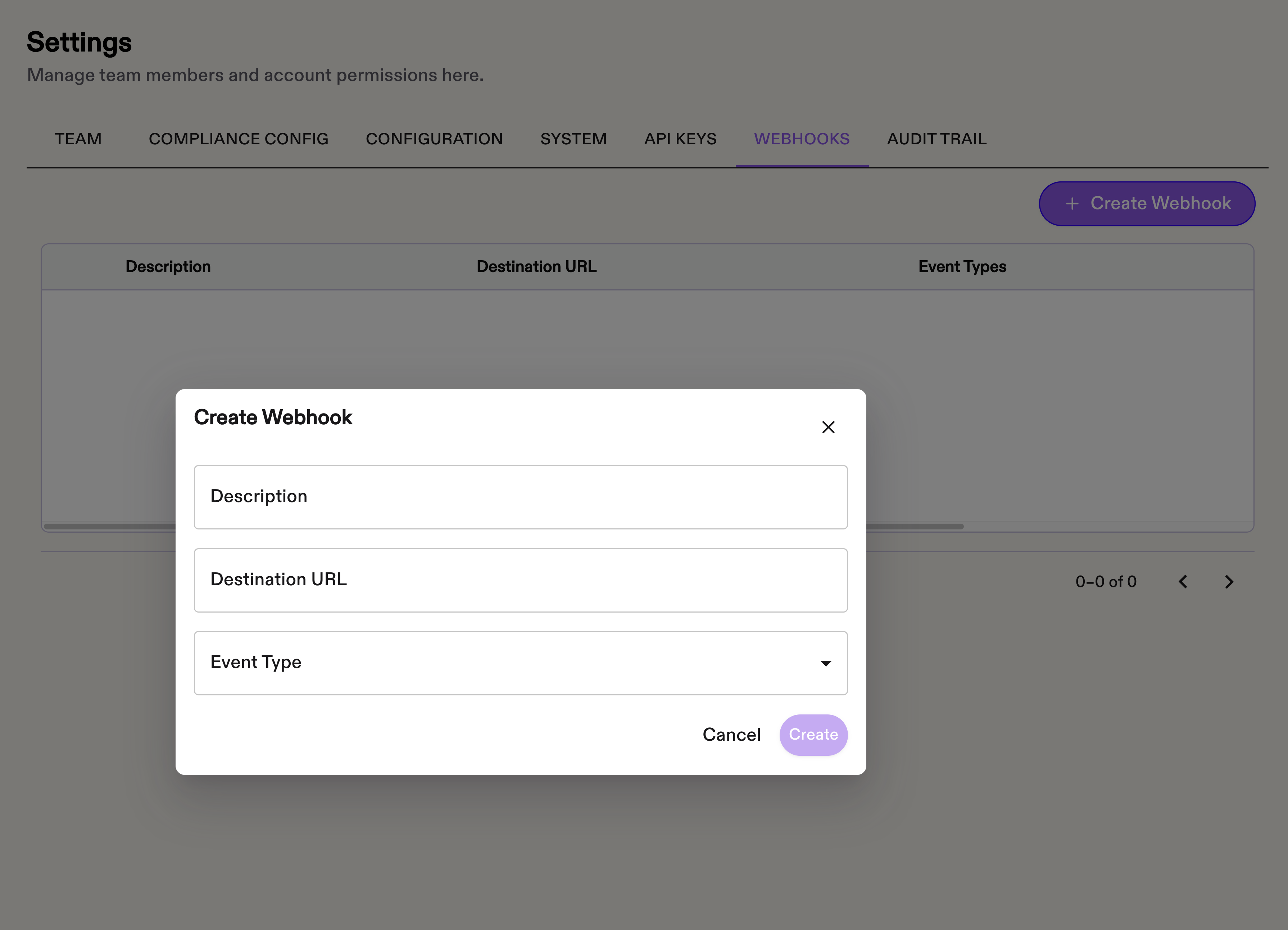 - Submit the form to create your webhook by pressing "Create Webhook"